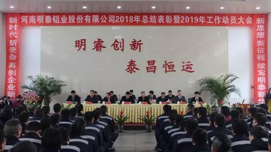 河南明泰鋁業(yè)股份有限公司2018年度總結(jié)表彰暨2019年工作動員大會于2019年1月11日上午在公司禮堂順利召開,鞏義市產(chǎn)業(yè)集聚區(qū)管委會副主任、回郭鎮(zhèn)黨委書記王躍舉,公司董事長馬廷義,副董事長化新民、杜有東,總經(jīng)理劉杰及500余名干部職工參加會議。